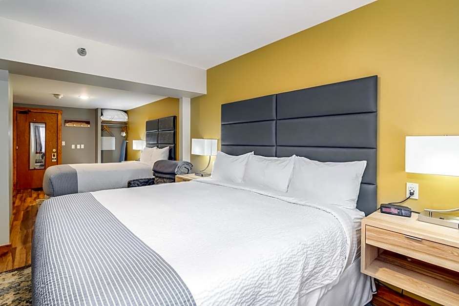 Located in the Mountain View building, this guestroom includes a panoramic windows. A 43-inch flat-screen TV and private bathroom with a glass shower are provided. A small refrigerator, microwave, and coffee maker are also included.