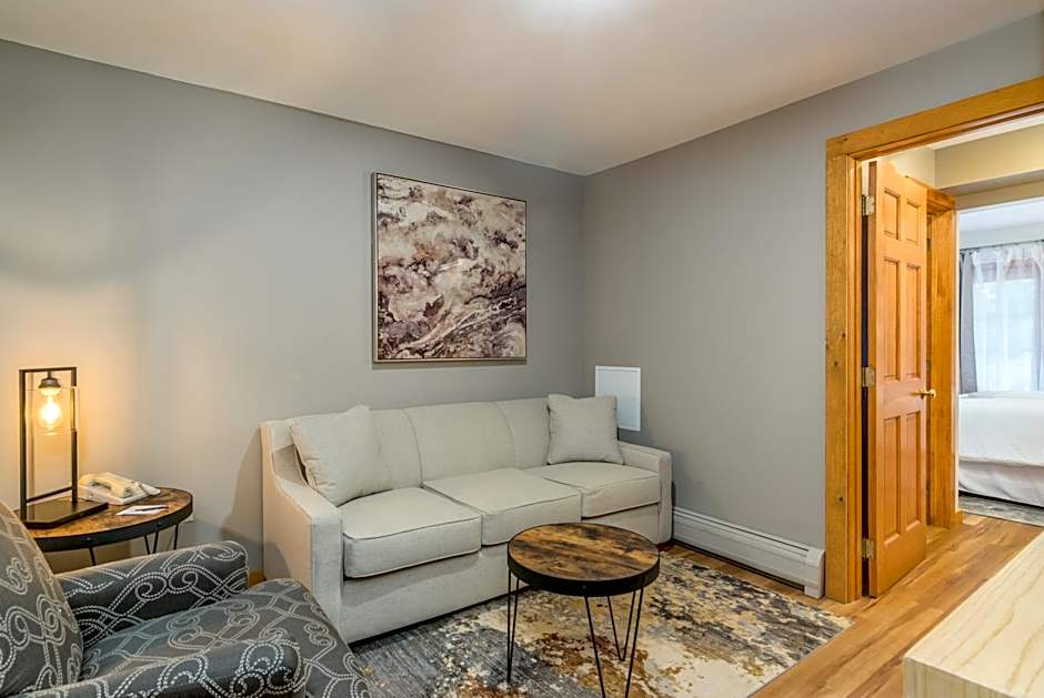 Located in the Main Inn, this suite includes a separate living room area with a sofa bed. A 55-inch flat-screen TV is provided, as is a small refrigerator, microwave, and coffee maker.