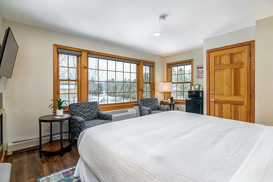 This spacious guestroom is located in the Main Inn and includes an private bathroom with a combination bath and shower. A 55-inch flat-screen TV is provided, as is a small refrigerator, microwave, and coffee maker.